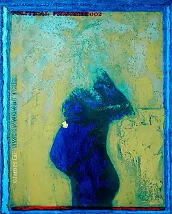 Through personal acquaintances with Tony Curtis, Kirk Douglas, John Wayne, Jim Morrison, Martin Luther King Jr. and Marlon Brando, Gill as an artist has become witness of a whole generation. These celebrated public characters also marked the substance of Gill’s work, which he is trying to convey through various techniques and compositions. Today’s art of James Gill is a fusion of realism and abstraction. Photos still remain the foundation of his art. He now sets the image composition of his paintings in the computer and works consciously with mounting effects which he describes as Metamage or Mixed Media.[15]