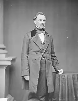 Shields was wounded at the Battle of Kernstown on March 22, 1862, but his troops inflicted the only tactical defeat of General Thomas J. "Stonewall" Jackson during the campaign (or the war).[24] The day after Kernstown, he was promoted to major general, but the promotion was withdrawn, reconsidered, and then finally rejected. Largely a result of his promotion being rejected, Shields resigned from the army.[5]: 721–4 [9]: 120 [25][26] Shields was informally offered command of the Army of the Potomac by Abraham Lincoln. Shields declined owing to a poor relationship with Secretary of War Edwin Stanton.[5]: 721–724 [7]
