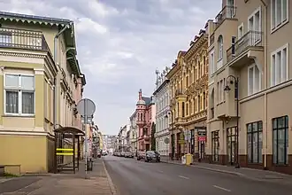 The side house on the right, now gone, located at the corner with Gdańska Street, was the birthplace of artist Walter Leistikow.[8]