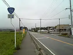National Route 114 (国道114号, Kokudō Hyaku jūyongō) is a national highway of Japan that traverses the prefecture of Fukushima in a northwest–southeast routing. It connects the prefecture's capital city, Fukushima in north-central Fukushima Prefecture to the town of Namie on the prefecture's eastern coast. It has a total length of 69.0 kilometers (42.9 mi). A section of the highway was closed following the Fukushima Daiichi nuclear disaster, but it has since been reopened.