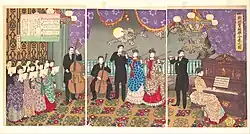A small minority of women adopted Western fashions early on; they were mostly students, geisha, or foreigners' mistresses. Most other women considered Western dress as something to accessorise with, not completely wear.[2]: 73 In the 1870s, women rarely participated in events including balls and social gatherings. It was not until late 1886 that a Westernised clothing system was designed for women. In September 1886, the reform for the wives of chokuninkan was designed, and in November 1886, for the soninkan. However, despite the clothing reforms being introduced, Western-style clothing was uncomfortable for most, so it took time for women to start wearing it.[1]: 39