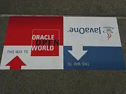 Directional sign on floor once JavaOne was co-located with Oracle OpenWorld in 2010
