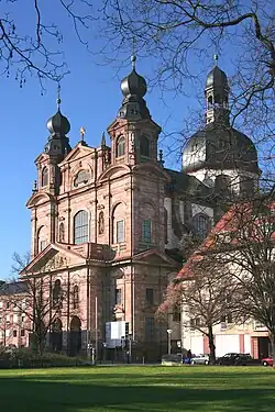 The church was built between 1733 in 1756 as the Court Church of the Mannheim electors Charles Philip III and Charles Theodore to a design of the Italian architect Alessandro Galli da Bibiena. It was completed in 1760 and consecrated to St. Ignatius of Loyola and St. Francis Xavier by the Prince Bishop of Augsburg, Joseph of Hesse-Darmstadt.