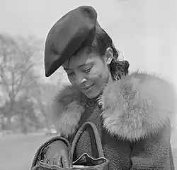 She was the subject of a U.S. Government Office of War Information documentary photo series in 1943 while she was a clerk at the Library of Congress.[6] The photos, taken by John Collier, were supposedly depicting a day in the life of a typical black Washingtonian, but critics argued that the photos were "less picturesque and less a credit to freedom's national seat" than a typical day of an average black woman in Washington D.C.[7]