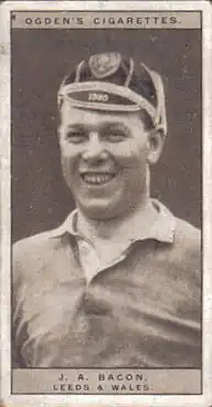 James Arthur Bacon (fourth ¼ 1896 – fourth ¼ 1968) was a Welsh rugby union, and professional rugby league footballer who played in the 1910s, 1920s and 1930s, and coached rugby league in the 1920s. He played club level rugby union (RU) for Cross Keys, and representative level rugby league (RL) for Great Britain, Wales and Monmouthshire, and at club level for Leeds (captain), and Castleford, as a wing, or centre, and coached at club level for Castleford.[1][3][4][5][6][7]