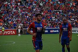 On 28 May 2012, Ward completed a move to Crystal Palace for £400,000 on a four-year deal.[27] He made his debut on 14 August 2012, in a 2–1 win against Exeter City in the League Cup.[28] He made his league debut four days later in a home game against Watford.[29] He won promotion with Crystal Palace after clearing a shot off the line during the last minute of injury time against the same opponents in the 2013 Championship play-off final.[30] Ward scored his first goal for Crystal Palace in a 3–1 home win against Queens Park Rangers on 14 March 2015.[31]