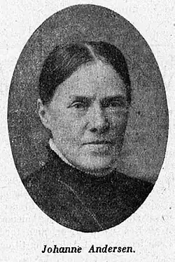 2. ^ a b Lemche, Gyrithe (17 July 2011). "Johanne Andersen (kvindesagsforkæmper)" (in Danish). Dansk Biografisk Leksikon. Retrieved 11 October 2021.
