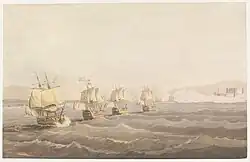 The Passage of Admiral Duckworth's Fleet in 1806-07 through the Dardanelles, painted by the Fleet's surgeon F.B. Spilsbury, kept by Fane as a souvenir.