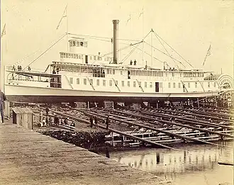 Leary built the steamer Bailey Gatzert for SSN&T.[93] One of the finest steamers of her time,[93][94] it was named after Leary's friend and close business associate Bailey Gatzert, and cost between $100,000 ($2,600,000[note 2])[95] and $125,000 ($3,300,000[note 2]).[93]