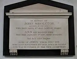 2. ^ A child called Ann was born 10 November 1828, the daughter of John Middleton, a painter, and his wife Ann, both of the parish of St Stephen's. The child died two days later.[19]