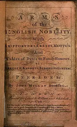 Title page of 'Arms of the English Nobility', John Millan, 1749.