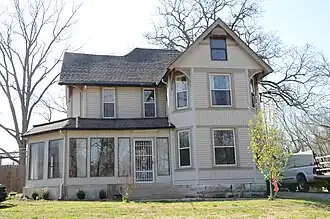The Jones House is a historic house at 220 Bush Street in Sulphur Springs, Benton County, Arkansas. It is a 2+12-story wood-frame structure with a T shape and cross-gable roof. The front facade, one of the ends of the crosspiece of the T, has beveled corners with the roof overhanging above the second floor, an Eastlake element. A porch wraps around the stem of the T, which extends to the south. Built c. 1896, it is a fine and well-preserved example of Eastlake-style architecture.[2]
