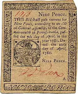 13. ^ "Pennsylvania: April 20,1781". coins.nd.edu. Retrieved 2024-08-18.