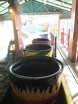 • Circular "Tubs" wind their way through mountainous scenery spinning and changing direction unexpectedly throughout the duration of the ride before returning to the station. Designed by Horace Cole.