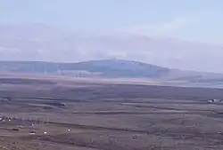 Inversion and wind turbines as viewed from the top of Jump off Joe.