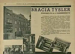 • the Tysler Brothers Confectionery Factory (Polish: Fabryka Wyrobów Cukierniczych Braci Tysler) set up in 1922 at 9 Warmińskiego street.[2]