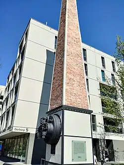 • Former plant Nr 3, at 5 Garbary Street. The plot has been converted in 2020 into a housing estate, by "Colian Developer", a subsidiary of the confectionery holding.[14] The massive factory chimney has been dismantled and reconstructed closer to the street, in remembrance of the previous activity of the site.[15][16]