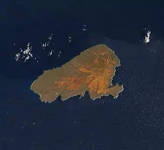 Kahoʻolawe is an extinct shield volcano, which formed during the Pleistocene epoch. It was once connected to the island of Maui Nui before splitting off about 300,000 years ago. Most of the island is covered by basaltic lava flows. A caldera is located in the eastern part of the island. The last confirmed volcanic activity on the island occurred about one million years ago, though eruptions could have occurred about 10,000 years ago.[9][10][11]