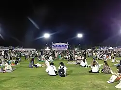 The Ryōzen Taiko Drum Festival (霊山太鼓まつり) or Date na Taiko Drum Festival (だてな太鼓まつり) is an annual two-day festival held in August. While the festival originated in the town of Ryōzen, in recent years it has been held at Hobara Total Park (保原総合公園) in Hobara Town, the central area of Date City. There is usually a comedic performance, among other stage acts, food and activity booths, as well as a battle between teams of taiko drum performers.[4][5]