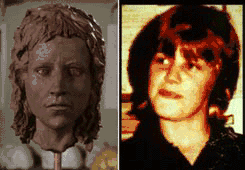 Comparison of a clay reconstruction of Karen Price's skull with a photograph of Price.