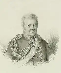 Karl Friedrich von dem Knesebeck (5 May 1768– 12 January 1848) was a Prussian field marshal and military adviser in the Napoleonic Wars, best known for designing the campaign plan of the Battle of the Nations and the subsequent invasion of France. As aide-de-camp to the king from 1813, and thereby his closest military advisor, he was a key figure in Prussia's military policy throughout the War of the Sixth Coalition and the subsequent Congress of Vienna.