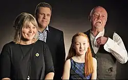 ![]() Crew of Katie Morag receiving Peabody Award in 2016. Left to right: executive producer Lindy Cameron, writer Sergio Casci, actor Cherry Campbell, director Don Coutts | |