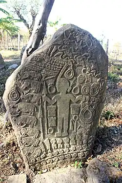 The site contained over 170 engraved menhirs aligned along a pathway at the entrance to the village.[3] Some of these menhirs are up to 15 feet tall, featuring engraved images of humans, animals, ceremonial items, traditional Mizo hunting practices, images of Mizo musical instruments and heroes from the community’s legends. A necropolis, retaining walls, and a "water pavilion"—a structure with drilled holes, likely for water storage were also found.[4][5]