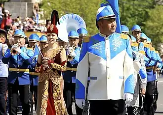The branch of the National Guard focused on education is the Military Institute of the National Guard.[17][18] It works to implement educational programmes of higher education and training future officers of the National Guard. It was founded as the Higher Military College of the Internal Troops by governmental decree on March 18, 1997. This date is today considered to be the official birthday of the institute. President Nazarbayev would present the school with its own ceremonial banner that December.[19]