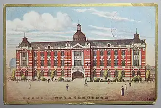 It operated services for both post and telegraph for much of its history.[1][3] In September 1939, after the telegraph service was split into a separately-managed service, the name of the building changed its name to Keijō Central Post Office (京城中央郵便局).[3]
