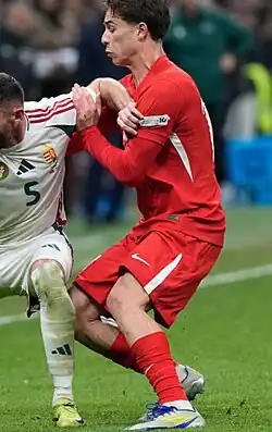 On 12 October, he made his full international debut as an 86th-minute substitute in the 1–0 win over Croatia.[24] Yıldız scored his first international goal on 18 November 2023 in a friendly match with a 3–2 win over Germany, his mother's country and his country of birth, in Berlin.[25] On 7 June 2024, he was selected in the 26-man squad for UEFA Euro 2024.[26]