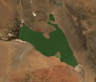 Khar-Us Lake (Mongolian: Хар-Ус нуур, ᠬᠠᠷᠠ ᠤᠰᠤ ᠨᠠᠭᠤᠷ, lit. "black water lake", Chinese: 哈尔乌斯湖, 黑水湖) is a lake located in western Mongolia in the Uvs Province between the districts of Ömnögovi and Ölgii. Khar-Us Lake is located south of the city of Ulaangom and about 80 km (50 mi) north of the homonymous and larger Khar-Us Lake in the Khovd Province.