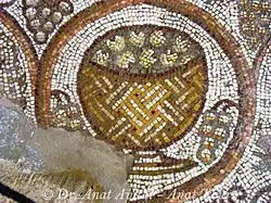 In 1983 and 1986 Joseph Patrich and Yoram Tsafrir excavated a basilica church at the site, as well as an olive press, a wine press and a burial cave nearby,[9] on behalf of the Institute of Archaeology of the Hebrew University in Jerusalem. The church is thought to have been built around the year 500 CE, and to have functioned well into the 8th century. The church complex was thought to be on the outskirts of a village. The mosaic floors of the church were defaced, reflecting iconoclastic activity, but were then repaired.[10]