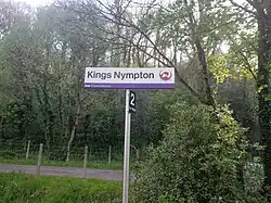 Kings Nympton railway station, also spelt King's Nympton, is a request stop on the Tarka Line in North Devon, serving the civil parishes of Chulmleigh, Burrington and King's Nympton. The station is located at Fortescue Cross, a road junction on the A377, around 2+12 miles (4 km) from its namesake village. It is 26 miles 21 chains (42.3 km) from Exeter Central at milepost 197.75 from London Waterloo.[1] The station and all trains are operated by Great Western Railway (GWR).
