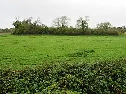 The boundaries of the Kingdom of Sussex probably crystallised around the 6th and 7th centuries.[23] The Domesday Book lists four Mardens on the East Hampshire/ West Sussex border. The Old English for Marden would have been Maere-dun meaning "boundary down", reflecting their position. A tributary of the River Ems rises south of Stoughton and travels north to North Marden, completing the western boundary of the South Saxons.[24] Bede described the western boundary with the Kingdom of Wessex as being opposite the Isle of Wight.[25][c] To the east at Romney Marsh and the River Limen (now called the River Rother or Kent Ditch), Sussex shared a border with the Kingdom of Kent. North of the Forest Ridge in the Wealden forest lay the sub-kingdom of Surrey, which became a frontier area disputed by various kingdoms until it later became part of Wessex. To the south of Sussex lay the English Channel, beyond which lay Francia, or the Kingdom of the Franks.