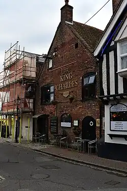 Formerly known as Wool House, Kinges Halle dates to the 15th century.[1] It was once attached to Poole Museum.[2] It was used as a warehouse and later as dwellings. It is now the King Charles Public House.[3] It was renamed after Charles X of France in 1830 when he landed at Poole Quay while fleeing after the Second French Revolution.[3]
