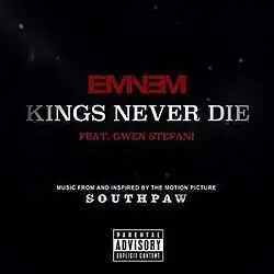 "Kings Never Die" is a song by American rapper Eminem, from the soundtrack album Southpaw (Music from and Inspired By the Motion Picture), released on July 10, 2015. It features American singer Gwen Stefani, marking their first collaboration. The song is the second single released from the soundtrack, after Eminem's "Phenomenal" which was released a month earlier. "Kings Never Die" also marks Stefani's first featured single since 2005's "Can I Have It Like That" with Pharrell Williams. The song was co-written and produced by the New Royales.