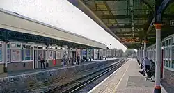 In common with the 16 hourly off-peak closer commuter services to/from London Waterloo calling at Earlsfield railway station (more during peak) and all intermediate London stations all managed by South Western Railway,[3] trains must stop at every intermediate station. There are no fast services available to mid distance destinations, which gives overcapacity towards the more suburban termini due to the longer journey time and overcrowding during the inner city phase of journeys.[4] This situation can be contrasted to certain other routes to destinations just outside Greater London in certain other directions.[5] However, due to its location on the Kingston Loop Line, passengers can also travel from Kingston to London via Twickenham.