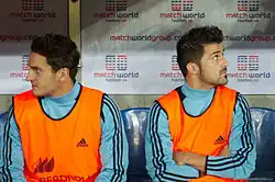 Koke (left) on the bench with Atlético teammate David Villa, in a friendly with Chile in 2013