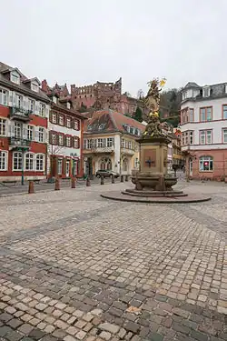 The Kornmarkt ("Corn market") is a square in the Altstadt of Heidelberg, near the Marktplatz. The north edge of the Kornmarkt is marked by the Hauptstrasse, the south by Ingrimstrasse and Karlstrasse. The Burgweg, which leads up to Heidelberg Castle, begins to the south of the Kornmarkt.