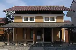 The kura storehouse was specifically used to store precious items. Other sorts of storehouses such as outbuildings (naya) and sheds (koya) were used to store more mundane items. The first kura appear during the Yayoi period (300 BC – 300 AD) and they evolved into takakura (literally tall storehouse) that were built on columns raised from the ground and reached via a ladder from underneath. They were especially prevalent on the Ryukyu Islands and Amami Ōshima.[2] During the Nara period (710–794), the government taxed the country in rice, and kura were frequently used to store it. After the introduction of Buddhism to Japan, kura were often used to store religious items, such as sutra.[3][4]
