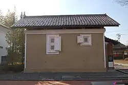 Kura in Kurashiki, Okayama, normally have tiles on the lower part of the external wall laid horizontally rather than diagonally.[31]