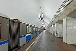 Kurskaya (Russian: Ку́рская) is a Moscow Metro station in the Basmanny District, Central Administrative Okrug, Moscow. It is on the Koltsevaya line, between Komsomolskaya and Taganskaya stations, and opened on 1 January 1950.