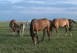 Bologonsky period 8-10th A.D.[88] Saddles placed upon the feet of the deceased. Wooden roof-like structures crafted above burials.[89] Stirrups like those produced by the Saltovo-Mayaki culture in the eighth and ninth centuries A.D.[90] Arrowheads similar to ninth and tenth century A.D. Yenisei Kirghiz productions.[91][92]