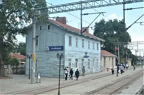 Lüleburgaz railway station (Turkish: Lüleburgaz istasyonu) is a station in the village Durak, Turkey. Despite carrying the town's name, the station is located about 5.9 km (3.7 mi) south of Lüleburgaz.[1] Ever since the station was opened, a settlement began around its vicinity, which later became the village of Durak. TCDD Taşımacılık operates a daily regional train from Istanbul to Kapıkule, which stops at Lüleburgaz station.[2]