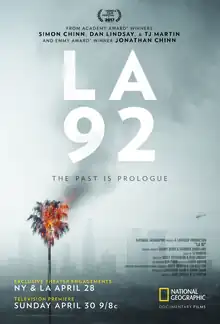 LA 92 is a 2017 American documentary film about the 1992 Los Angeles riots, directed by Daniel Lindsay and T. J. Martin.[5] It premiered at the Tribeca Film Festival on April 21, 2017, opened in theaters on April 28, 2017 and aired on National Geographic Channel on April 30, 2017.[6]