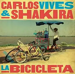"La Bicicleta" (transl. "The Bicycle") is a song by Colombian singer-songwriters Carlos Vives and Shakira. The track was released on May 27, 2016, as the lead single from Vives' fifteenth studio album Vives (2017). It was written by both singers and Andrés Castro, and produced by the three along with Luis Fernando Ochoa. It marks Shakira's first collaboration with a fellow Colombian artist. "La Bicicleta" was intended to be representative of both singers' homelands musical styles in Colombia. It is a track with a mixture of various musical genres – vallenato, pop and reggaeton – and it features indigenous Colombian wind instruments and accordions. Lyrically, it is a nostalgic song, describing the duo's excursion on bikes to places of their childhood. Music critics reviewed the song positively, praising it for its catchiness and inclusion of various Colombian music elements. The song won two Latin Grammy Awards at the 17th Latin Grammy Awards for Song of the Year and Record of the Year. It was later included as an album track on Shakira's eleventh studio album El Dorado (2017).