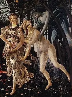 Chloris and Zephyrus depicted in Botticelli's 1482 painting Primavera