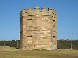 The first building in the area was the octagonal stone tower constructed in 1820–22 as accommodation for a small guard of soldiers stationed there to prevent smuggling, and the tower still stands today.[23] By 1885, an Aboriginal reserve had been established in the suburb and a number of missions were operated in the area. The original church was dismantled and moved to the corner of Elaroo and Adina Avenues, where it still stands. It is known as the La Perouse Mission Church.