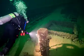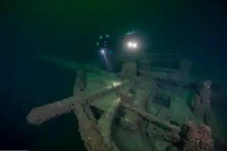 Since the early days of European exploration of North America, Europeans, and later Americans, have traversed the waters of southeastern Lake Ontario.[4] Scuba divers and shipwreck explorers have identified 41 shipwrecks and the wreckage of one aircraft within the boundaries of the Lake Ontario National Marine Sanctuary which together span more than 200 years of the history of the United States, including the role of Lake Ontario in supporting the growth of the industrial core of the early United States.[3][4][6] At the time of the sanctuary's designation in 2024, historical records suggested that an additional 19 shipwrecks and three wrecked aircraft lie within it.[3][6] The shipwrecks provide historians and maritime archaeologists with insights into maritime innovations of the past, the history of trade and transportation on Lake Ontario, the shipbuilders who constructed the ships, the sailors and passengers aboard them, and the communities they served, as well as the lake's role in military conflicts.[6] The shipwrecks include some of the oldest in the Great Lakes[6] and are among the best-preserved in the world,[4] and even the oldest of them is in pristine condition thanks to the cold fresh water of Lake Ontario.[6]