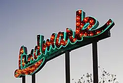 227. ^ Weis, Derek (January 10, 2020). "How Many of the Signs Light Up?". Neon Museum. Retrieved August 31, 2021. Please note that the Landmark sign has been temporarily placed in storage due to nearby construction work.